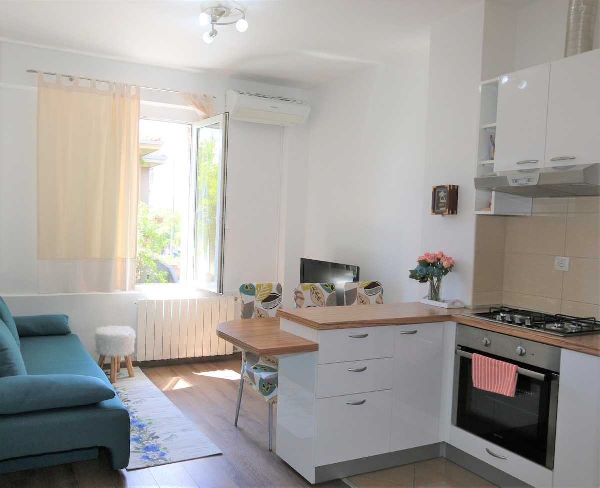 Beach Sablicevo and Glavanovo (pecine) are 12-15 min walk. You can reach city center by bus (bus station is only a 1 minute walk) or by foot (12-15min). Nearby is also bakery, laundry service, flower shop. Shopping mall (Tower center) is 10min walk. Beach is 12-15 min walk (downhill - shorter way). You can reach city centre by bus (bus station is only a 1 minute walk) or by foot (10-15min). Nearby is also bakery, laundry service, flower shop. Shopping mall (Tower centre) is 10min walk. Free public parking can be found around the building or in the surrounding streets and depends on availability. There is an extra space (outside apartment) room f.e. luggage, bikes, stroller...please let me know if you need that space so I can leave you a key.