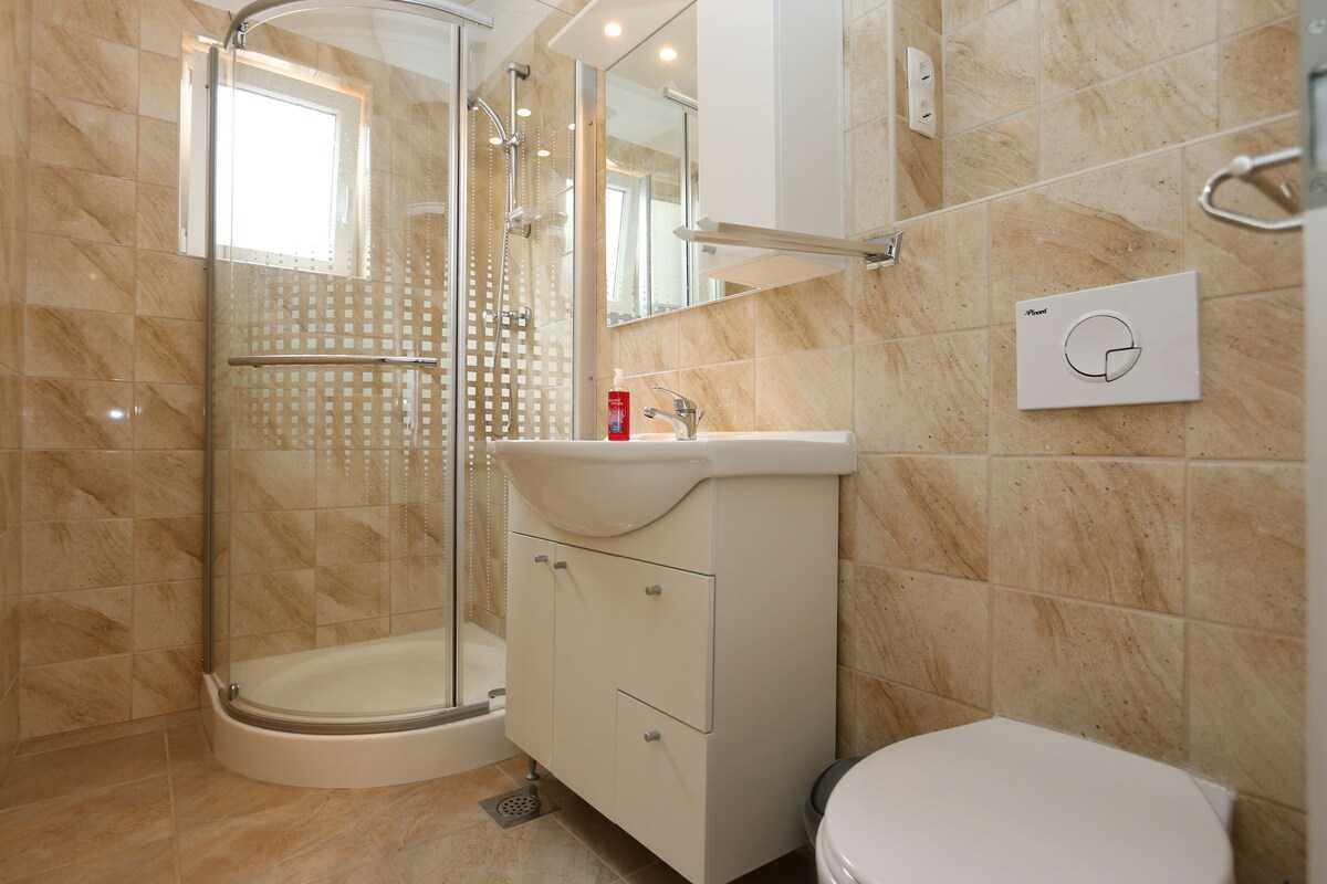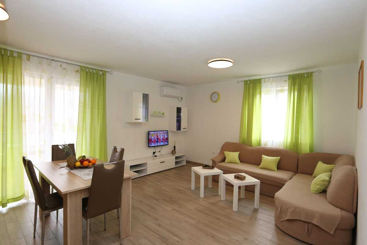 Accommodation Mrakovcic Mirjana offers space up to 4 guests. The picture perfect nature and concrete slabs beaches are 130 m away. Share the photos of your well-deserved vacation using Internet available for your use. No crowds, no fixed mealtimes and no overcrowded terraces - awake your inner chef using available Grill and indulge in delicious local food. Fill your evenings with lots of laughter and fun whilst sipping local drink(s) on 8 m2 balcony. Nice little added bonus is view of Green area and garden.