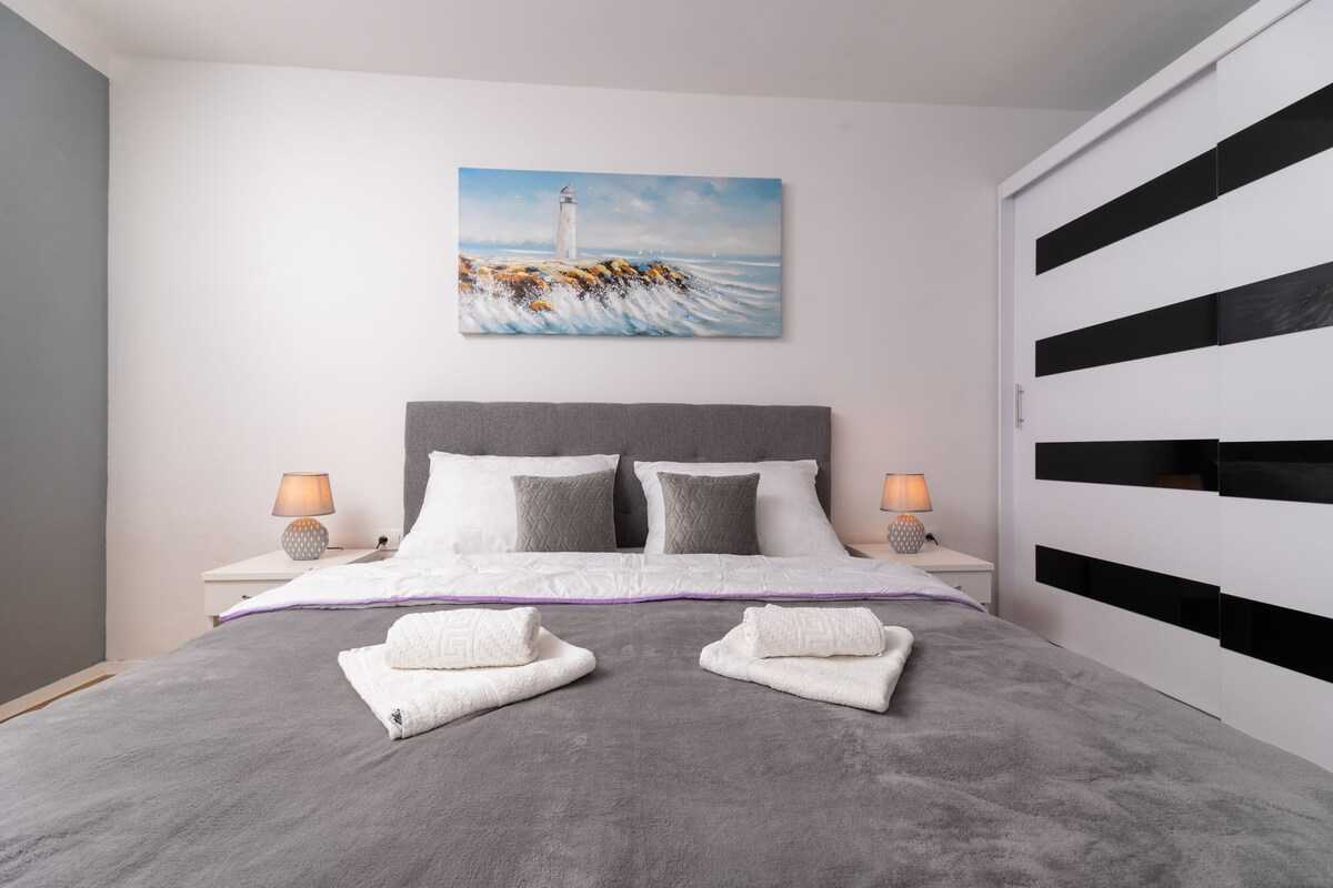 A szállás nagyon tiszta, modern, jól felszerelt, ugyanolyan mint a képeken. Mikro nincs, de sütő, tűzhely, vízforraló, kávéföző rendelkezésre áll. Az ágyak nagyon kényelmesek. Pár perc sétára van játszótér, élelmiszerbolt, strand, kikötő. Házigazdák nagyon kedvesek, fent laknak az emeleten. Érkezésünkkor friss gyümölcsöt bekészítve vártak minket.