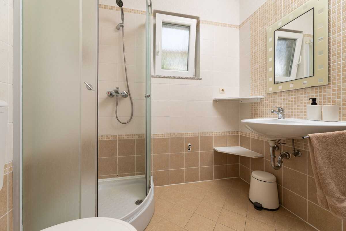 Raspored apartmana je dosta dobar, dočekalo nas je sve čisto i uredno te piće u frižideru. Okućnica je u zelenilu kao i cijelo područje. Imali smo sve potrebno za osnovno kuhanje obroka, a iako nije baš uz more, udaljenost do plaže je prihvatljiva čak i za dijete od 4 godine. Ipak, tko ne voli uzbrdice možda će ipak ići autom. Zadovoljni smo, preporučamo i vratili bismo se ponovno.